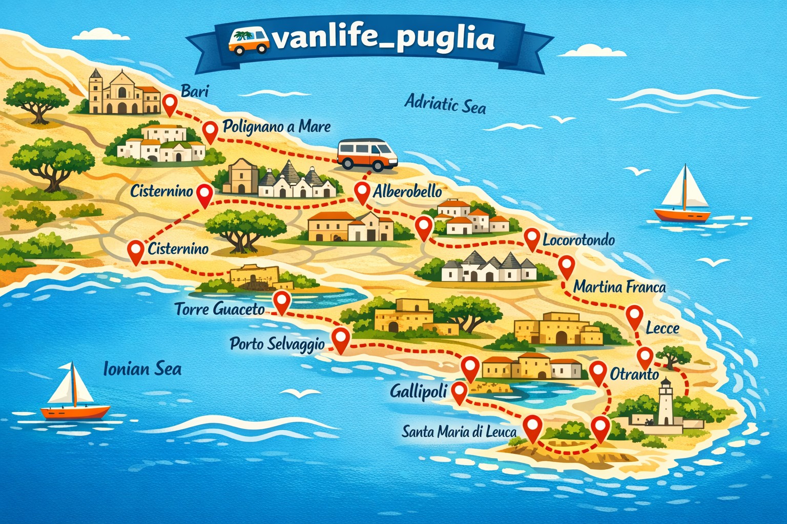 Viaggiare in van è il modo migliore per scoprire la Puglia.